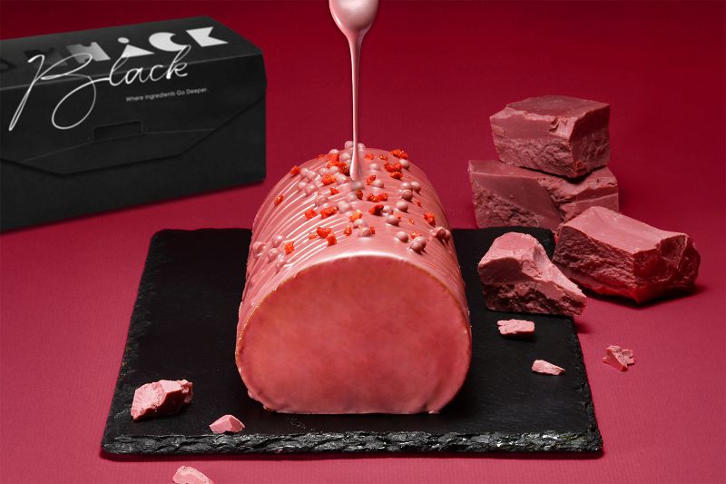 亞尼克表示,今年這兩款母親節獻禮的生乳捲,選用珍稀的可可豆、全球第四種巧克力「紅寶石巧克力 」,不僅擁有天然的夢幻粉紅色澤,更帶有高級感的莓果香,從萃取到成型,工序繁複如同雕琢珠寶。