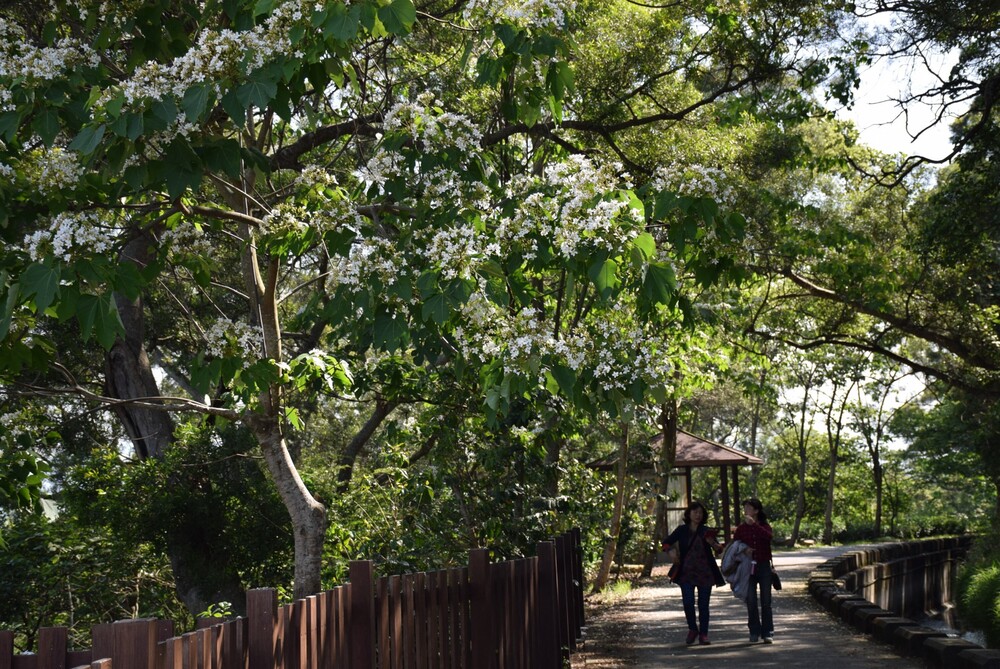 二十年來,外埔區農會與區公所攜手合作,在永豐及六分里水流東圳旁種植約二公里的油桐花,迄今白色花朵盛開,遊客站在落花的樹下行走,猶如踏雪之浪漫感受,令人流連忘返。農會總幹事李錦東表示;油桐花開花祗二個多星期,賞油桐花何必到深山,近期中,喜賞花的民眾勿失良機。外埔農會與區公所,鑑於油桐花受到民眾的歡迎,致從二十年前就開始在永豐與六分里水流東圳沿線自行車專用道旁,種植約二公里的油桐樹。油桐樹每到春天長出新枝葉後,前端即形成花芽,花剛開時白色,花心淡綠色,隨後花心顏色逐漸轉深而成紅褐色,當花朵掉落如同飄雪、且地上舖著一層白色花朵。(圖文:記者陳榮昌)