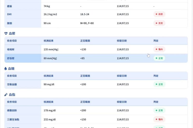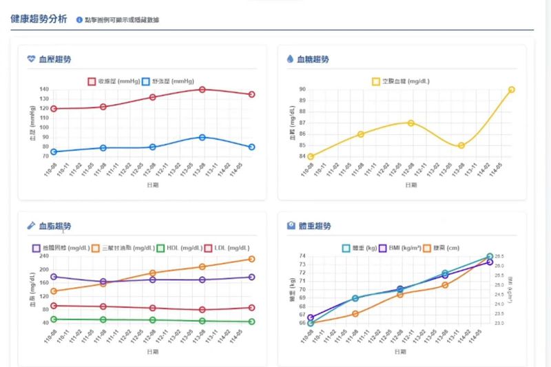 吳彬安副院長表示,LHIT系統的核心價值在於以病人為中心的「全人(Holistic Care)」概念。過去的健檢報告往往侷限於單一項目或單次數據,民眾看得到數字卻看不出潛在的疾病趨勢;而LHIT系統打破了科別與項目的藩籬,將病人從過去到現在、跨院內各科別的所有檢查數據進行深度動態整合,再透過圖表呈現個人健康趨勢曲線,讓接受檢查的民眾及家屬能更清楚了解自己的身體狀況。吳副院長形容:「這套系統就像是為每位民眾配置了一位專屬的『個人AI醫師』,能從海量的歷史數據中,精準分析出一個人的健康演變,真正做到以人為本的精準醫療。」