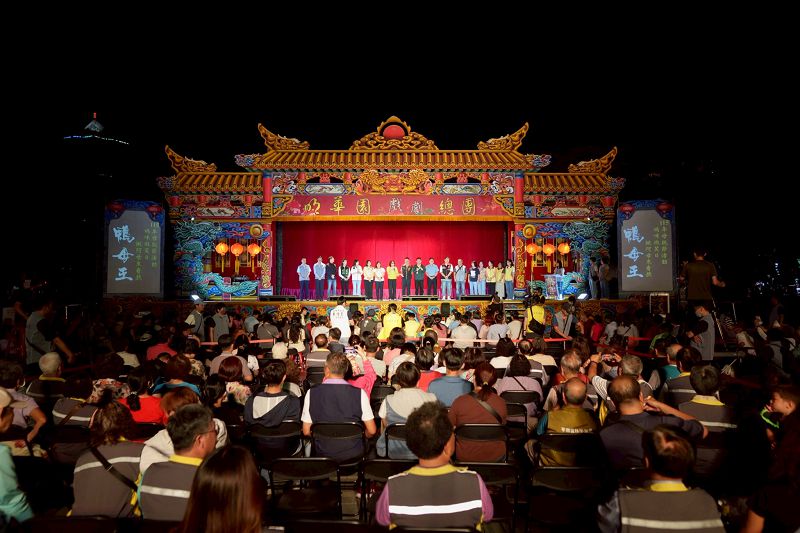 【記者于欽智高雄報導】母親節即將到來,高雄市議會26日晚上於文化中心圓形廣場提前舉辦「2026年母親節活動」,特別邀請台灣傳統戲劇天團「明華園戲劇總團」演出經典大戲《鴨母王》,吸引市民扶老攜幼齊聚,現場座無虛席,場面熱鬧溫馨。