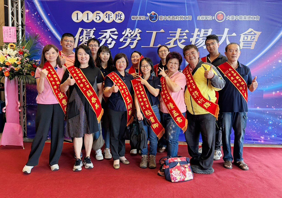 大臺中職業總工會肯定勞工長期投入與專業貢獻,在五一勞動節前夕公布115年度優秀勞工名單,大安區農會及大安肉品市場有26位同仁獲選,展現勞動者在各自崗位上默默耕耘的成果,也突顯大安農業體系穩健運作的實力。總工會評後公佈大安農會獲獎人員計12名,包括顏秀香、許祈輝、陳孟君、蘇瑞春、王碧麗、李佩儒、蘇春美、陳志維、黃俊仁、彭湘玉、白駿紘及張意媗;大安肉品市場獲獎人員計14名,包括王明華、陳巧婷、蘇碧馨、顏靖、陳木田、蔡招、楊美華、陳君柏、林義和、黃清益、蔡佳良、王怡雅、張珮君及粘書卿,共計26人榮譽上榜並接受表揚名單。(圖文:記者陳榮昌)