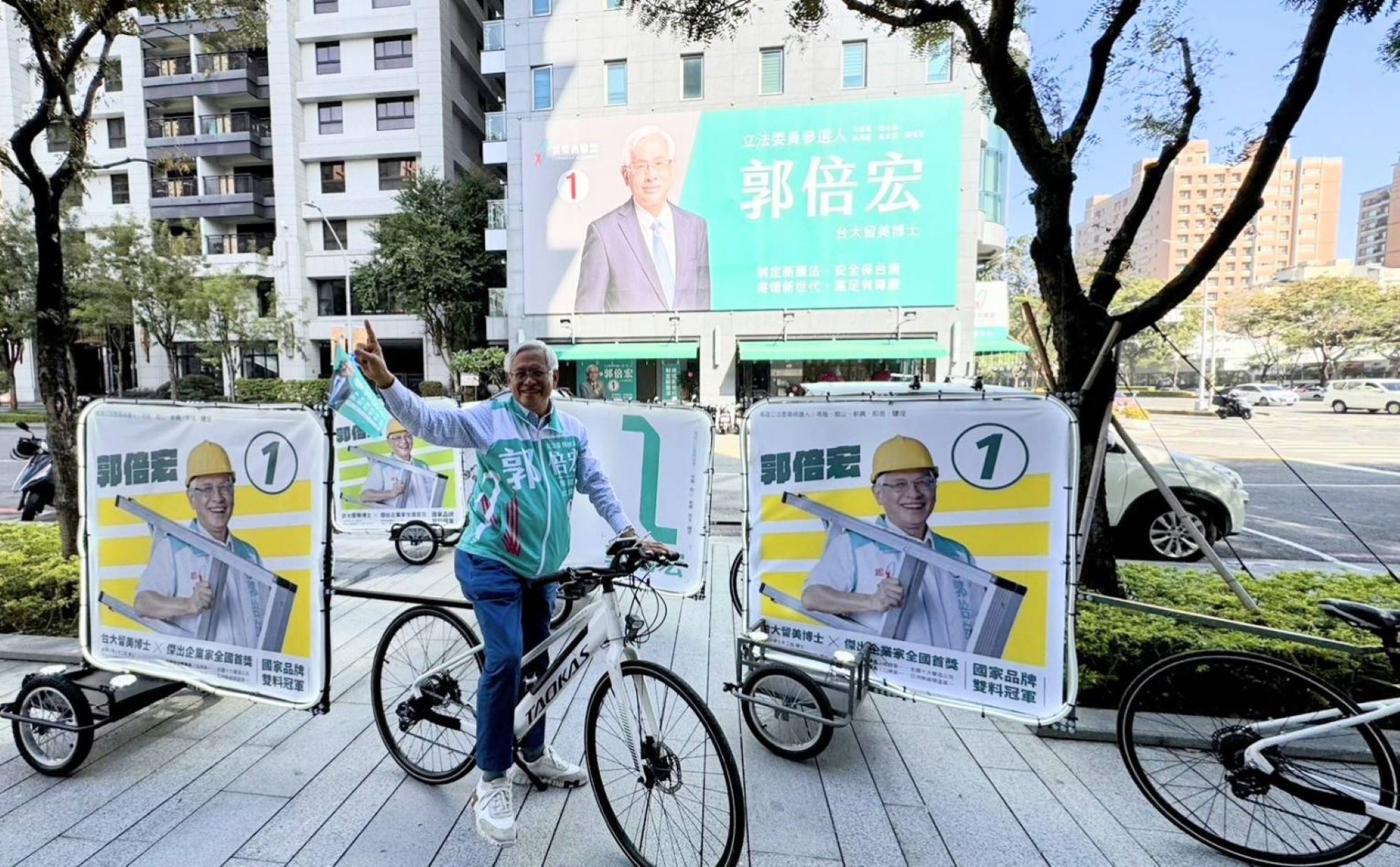 郭倍宏鼓勵青創採用腳踏電輔載具競選車