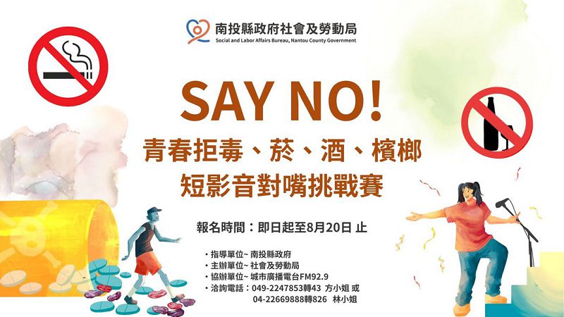 【記者吳素珍南投報導】為積極配合政府推廣政令,打造健康幸福宜居城市,南投縣政府社會及勞動局特別舉辦「Say No!青春拒毒菸酒檳榔-短影音對嘴挑戰賽」,提供青少年暑期正當休閒活動,關懷青少年福利 繼續閱讀