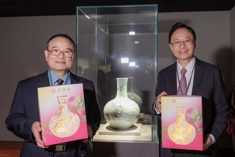 桃園市長張善政與國立故宮博物院長蕭宗煌共同推出《桃茶寶盒》。