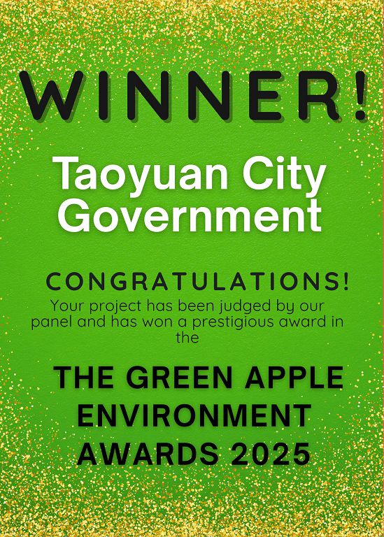 桃園市在英國綠色組織主辦的 2025 年「綠蘋果環境獎」中,以三項永續治理計畫榮獲金獎,成為台灣唯一獲獎城市。