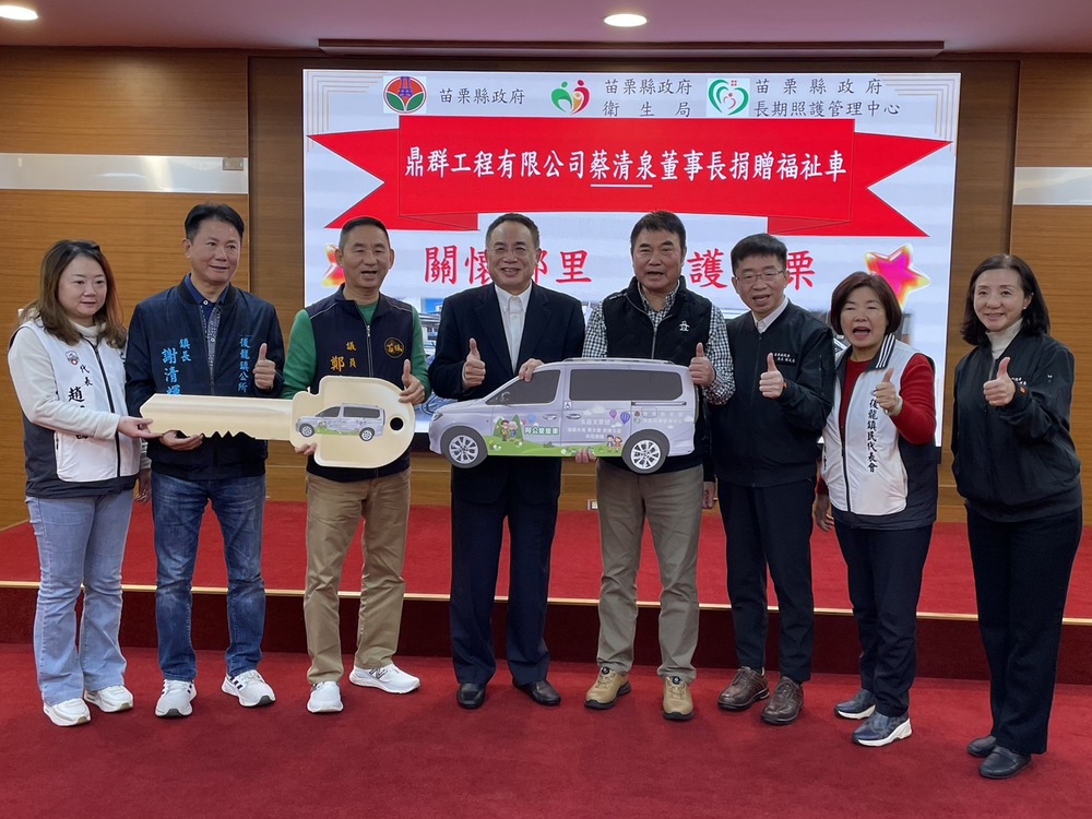 【記者林盈焜、羅玉女苗栗報導】為讓長輩往返關懷據點或幸福學園更加便捷,經營企業有成的鼎群工程公司董事長蔡清泉,30日捐贈1輛市價145萬元的長照福祉車給苗栗縣政府,將提供後龍地區長輩及行動不便者 繼續閱讀